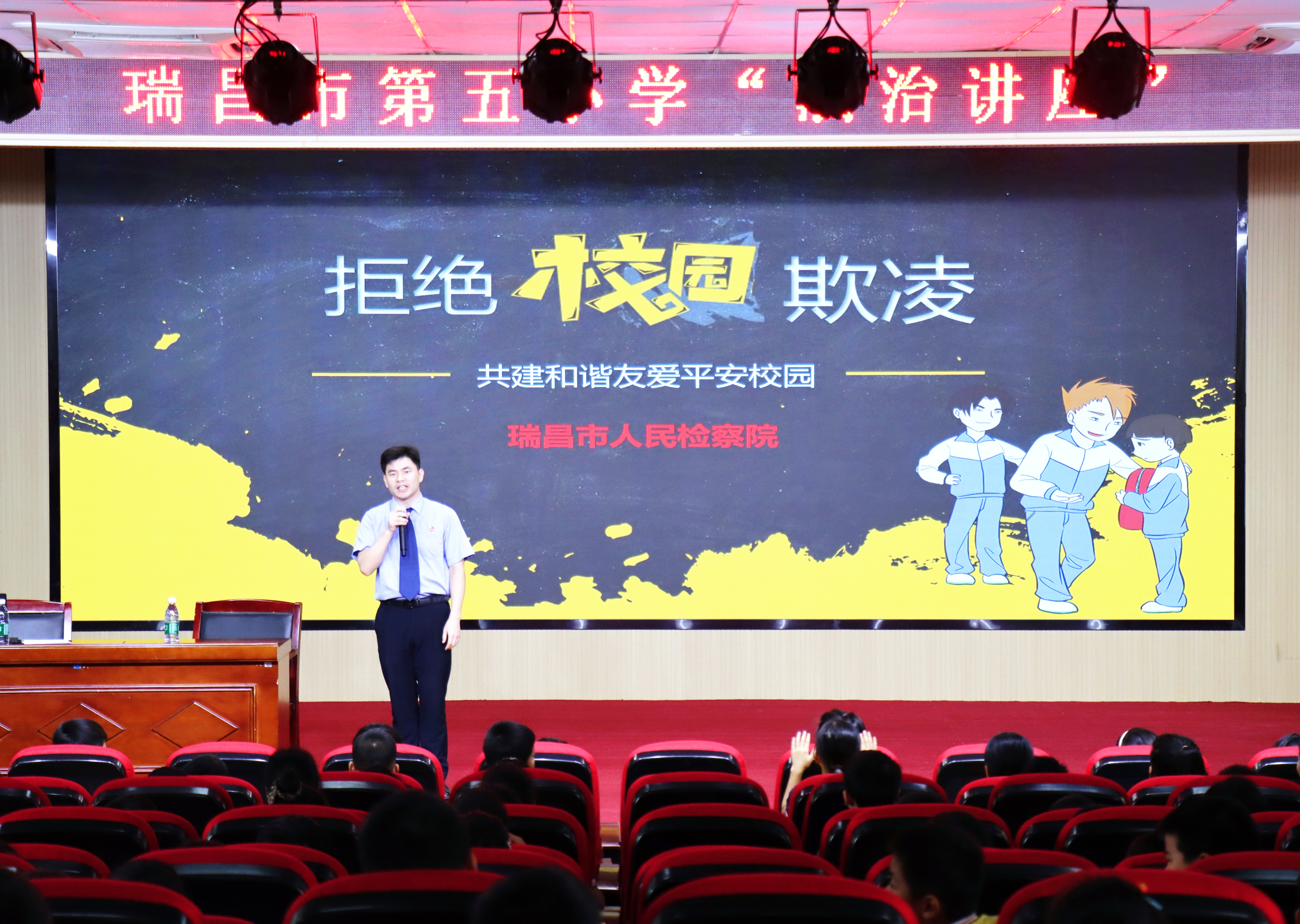 为进一步加强青少年法治意识,筑牢校园安全防线,从源头预防校园欺凌事件的发生,呵护青少年健康成长,9月26日,瑞昌市检察院走进瑞昌市第五小学,带来了一堂主题为“拒绝校园欺凌 共建和谐友爱平安校园”的法治教育课。